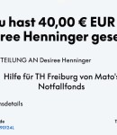 | 01.01.2025 | Notfallfonds | 40,- Euro | Tierheim Freiburg |